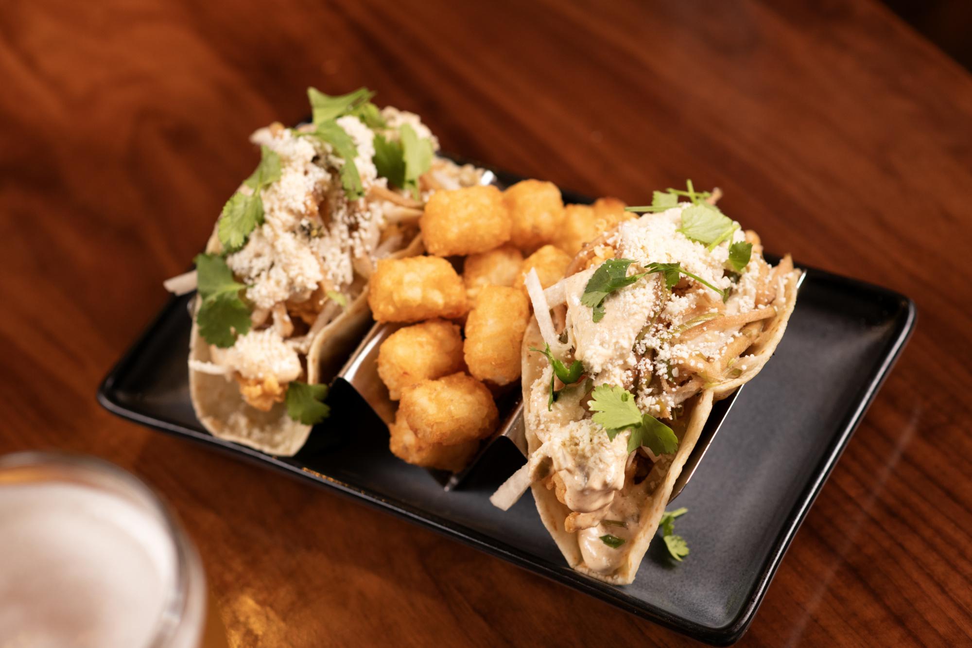 Crispy cauliflower wings tossed in fried garlic, Korean hot sauce, and peanuts, topped with sesame and green onions, served with creamy peanut sauce.