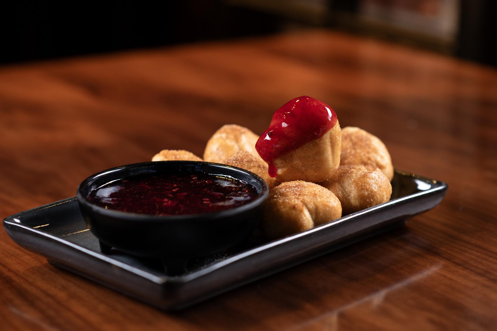 Light, crispy Italian zeppole dusted with cinnamon sugar, served with a wild berry sauce for dipping.
