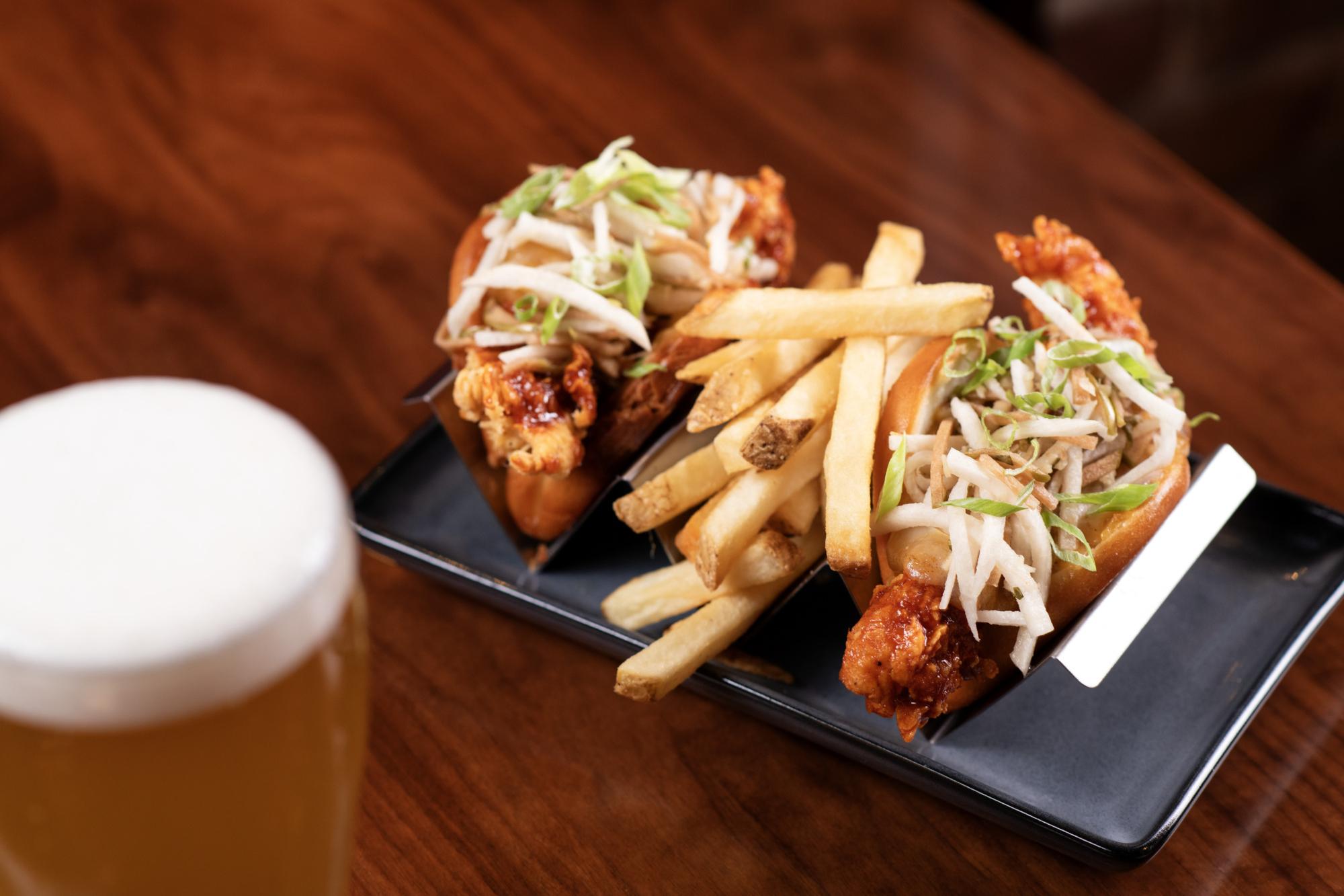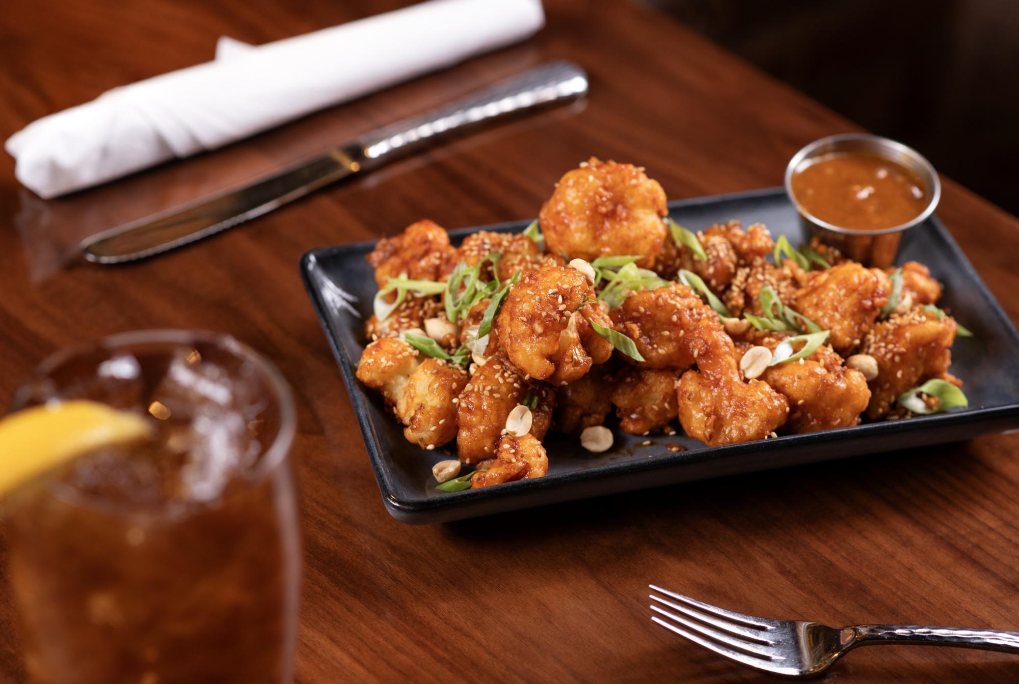 Crispy cauliflower wings tossed in fried garlic, Korean hot sauce, and peanuts, topped with sesame and green onions, served with creamy peanut sauce.